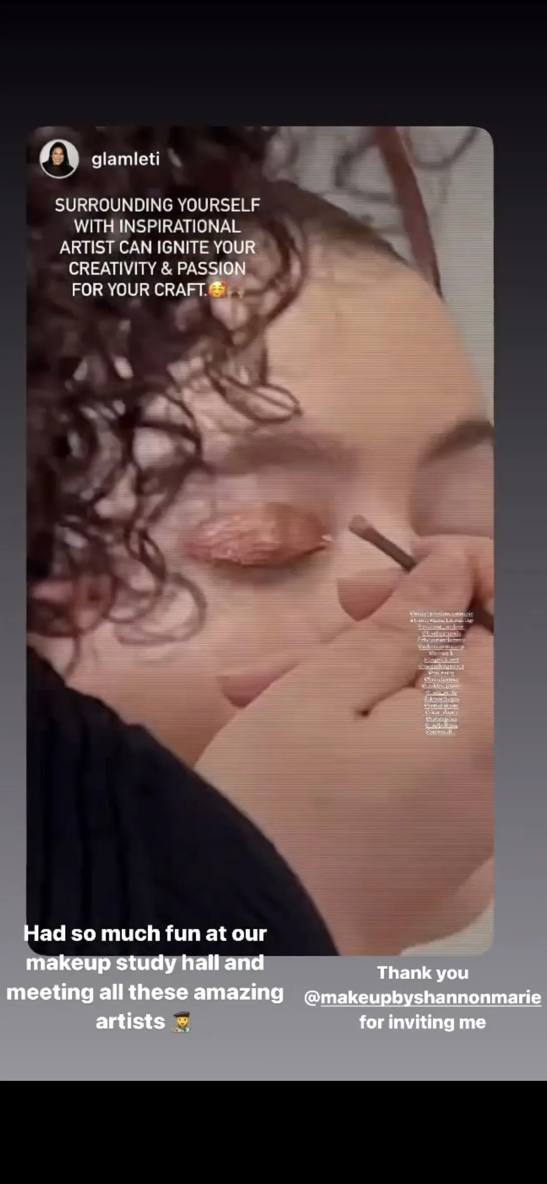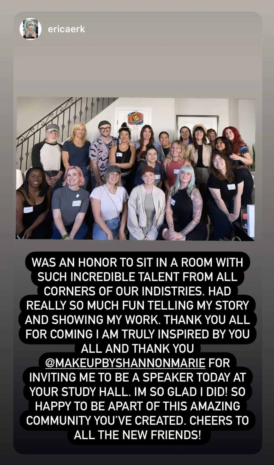 “Was an honor to sit in a room with such incredible talent from all corners of our industries. Had really so much fun telling my story and showing my work. Thank you all for coming I am truly inspired by you all and thank you @MakeupByShannonMarie for inviting me to be a speaker today at your study hall. I’m so glad I di! So happy to be a part of this amazing community you’ve created. Cheers to all the new friends!”